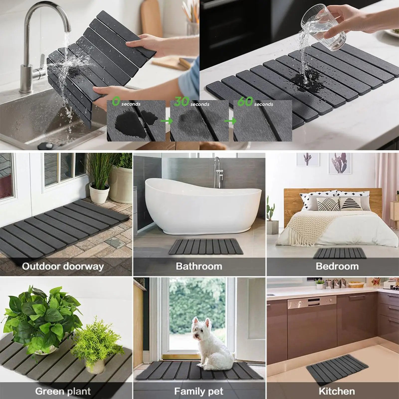Wet countertops and soggy mats create a mess. KitchenRock Drying Mat absorbs water fast and dries quickly, keeping your kitchen clean, dry, and easy to maintain.